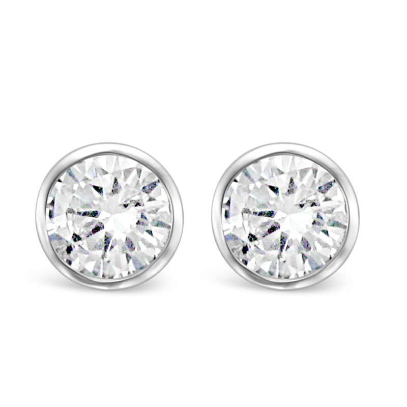 Round Rub-Over Set Solitaire Diamond Earrings, Set in 18ct White Gold. Tdw 1.0ct