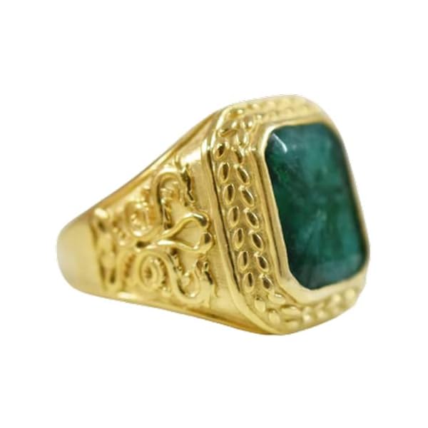 Emerald Corundum Gemstone Ring, 925 Yellow Gold Sterling Silver Ring, Octagon Faceted, Handmade, Man’s Heavy Ring, Men’s Wear Ring, Statement Ring, Ring For Him, Gift For Husband, Stylish Ring