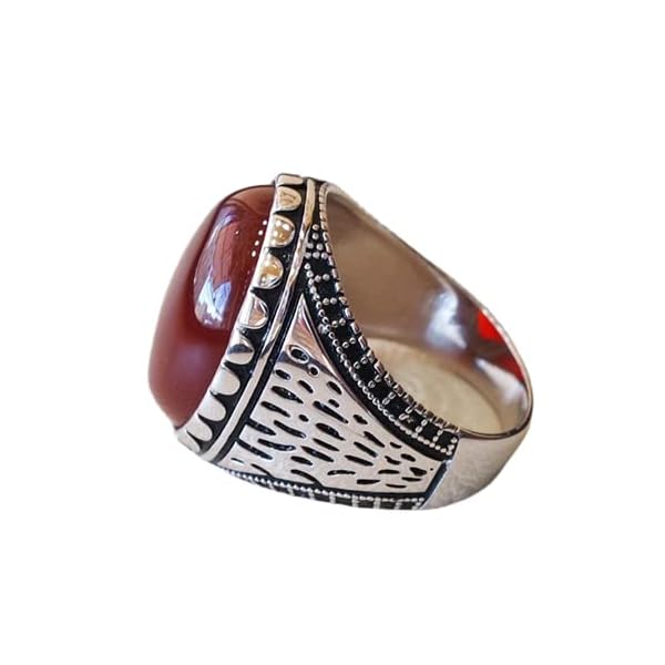 Carnelian, Yemeni Aqeeq Ring, Sterling Silver 925, Dark Red, Semi Precious Natural Gemstone Men Jewelry, Middle Eastern, Wedding Ring, Signet Men’s Ring, Statement Ring, Silver Enamel Ring